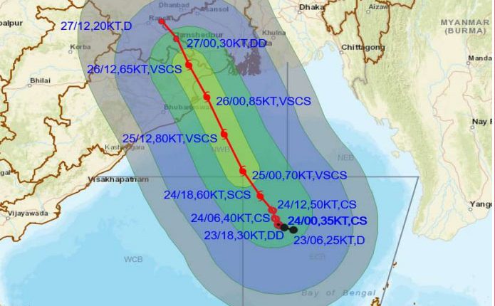 ଭୁବନେଶ୍ବର: ପୂର୍ବ କେନ୍ଦ୍ରୀୟ ବଙ୍ଗୋପସାଗରରେ ସୃଷ୍ଟି ହୋଇଥିବା ଅବପାତ ଆହୁରି ଘନୀଭୂତ ହୋଇ ଆଜି ସକାଳ ସାଢେ ପାଞ୍ଚଟା ବେଳେ ବାତ୍ୟା ରୂପ ନେଇଛି। ୟାସ୍ ଆହୁରି ଘନୀଭୂତ ହୋଇ ଆସନ୍ତାକାଲି ଭୀଷଣ ରୂପ ନେବ ଓ ୨୬ ତାରିଖରେ ଅତି ଭୀଷଣ ରୂପ ନେଇ ଭୋରରେ ଉପକୂଳକୁ ଛୁଇଁବ। ୨୬ ତାରିଖ ମଧ୍ୟାହ୍ନ ପରେ ଏହା ପାରାଦୀପ ଠାରୁ ସାଗରଦ୍ବୀପ ମଧ୍ୟରେ ସ୍ଥଳଭାଗକୁ ଛୁଇଁବ। ଏବେ ବାତ୍ୟା ପାରାଦୀପ ଠାରୁ ୫୪୦ କିଲୋମିଟର ଏବଂ ବାଲେଶ୍ବର ଠାରୁ ୬୫୦ କିଲୋମିଟର ଦୂରରେ କେନ୍ଦ୍ରୀଭୂତ ହୋଇ ଅଧିକ ବଳ ଗୋଟାଇବା ସହିତ ଆଗକୁ ବଢ଼ୁଛି। କେବଳ ସେତିକି ନୁହେଁ, ବାତ୍ୟା ଉତ୍ତର ପଶ୍ଚିମରୁ ଦିଗ ପରିବର୍ତ୍ତନ କରି ଉତ୍ତର-ଉତ୍ତର ପଶ୍ଚିମ ଦିଗ ଅର୍ଥାତ୍ ଓଡ଼ିଶା ଆଡ଼କୁ ମୁହାଁଇବା ଆରମ୍ଭ କରିଛି।