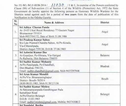 କେନ୍ଦ୍ରାପଡା ଜିଲ୍ଲାର ଅବୈତନିକ ବନଖଣ୍ଡ ତତ୍ୱାବଧାରକ ଭାବେ ସାମ୍ବାଦିକ ତଥା ଯୁବ ସମାଜସେବୀ ସୂର୍ଯ୍ୟ ନାରାୟଣ ଲେଙ୍କାଙ୍କୁ ନିଯୁକ୍ତି ମିଳିଥିବା ବେଳେ ଅନୁଗୁଳ ଜିଲ୍ଲା ପାଇଁ ଅଦୈତ ଚରଣ ପଣ୍ଡା, ପ୍ରଦୀପ କୁମାର ସାହୁ, ବାଲେଶ୍ୱର ପାଇଁ ଅଶ୍ୱିନୀ କୁମାର ଦାସ, ଭଦ୍ରକ ପାଇଁ ସୁଧିର କୁମାର ମହାନ୍ତି, କଟକ ପାଇଁ ସୁରେଶ ଚନ୍ଦ୍ର ତ୍ରିପାଠୀ, ଢେଙ୍କାନାଳ ପାଇଁ ଶିଶିର କାନ୍ତ ବେହେରା, ବିଜୟ କୁମାର ଦାସ ପ୍ରମୁଖଙ୍କୁ ନିଯୁକ୍ତି ମିଳିଛି । ୨ ବର୍ଷ ଯାଏଁ ଏହି ଅବୈତନିକ ବନଖଣ୍ଡ ତତ୍ୱାବଧାରକ ମାନେ କାର୍ଯ୍ୟ କରିବେ।