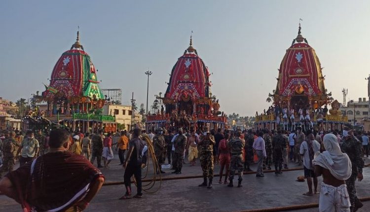 ପୁରୀ: ଶରଧାବାଲିରେ ତିନି ରଥ। ମହାମାରୀ କଟକଣା ଓ କର୍ଫ୍ୟୁ ଭିତରେ ବିନା ଭକ୍ତରେ ତିନି ରଥ ଶରଧା ବାଲିରେ ନିର୍ଦିଷ୍ଟ ସମୟ ପୂର୍ବରୁ ପହଞ୍ଚିଥିଲେ ମହାପ୍ରଭୁ। ଆଜି ଜନ୍ମବେଦୀକୁ ବିଜେ କରିବେ ମହାପ୍ରଭୁ। ଆଡପମଣ୍ଡପ ବିଜେ ପାଇଁ ଆରମ୍ଭ ହୋଇଯାଇଛି ପ୍ରସ୍ତୁତି। ସେପଟେ ପୁରୀରେ ଲାଗିଥିବା କର୍ଫ୍ୟୁ ସାମାନ୍ୟ କୋହଳ କରାଯାଇଛି।