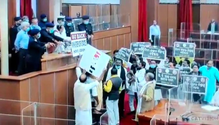 ଚାରି ଦିନ ହେବ ବିରୋଧୀ ମାନେ ନିଜ ନିଜ ଜିଦରେ ଅଡି ବସିଛନ୍ତି । ମମିତା ମେହେର ହତ୍ୟା ପ୍ରସଙ୍ଗରେ ମନ୍ତ୍ରୀ ଦିବ୍ୟଶଙ୍କର ମିଶ୍ରଙ୍କ ବହିଷ୍କାର ଦାବି ଜିଦରେ ଅଟଳ ରହିଛନ୍ତି ବିରୋଧୀ । ଫଳରେ ବିଧାସନଭସଭାରେ ଅଚଳାବସ୍ଥାରେ ଜାରି ରହିଛି । ଆଜ ଗୃହ ଆରମ୍ଭ ହେବା ମାତ୍ରେ ମନ୍ତ୍ରୀ ଦିବ୍ୟଶଙ୍କର ବହିଷ୍କାର ଦାବି କରି ହଟ୍ଟଗୋଳ କରିଥିଲେ ବିରୋଧୀ । ଗୃହର ମଧ୍ୟଭାଗକୁ ଆସି କଂଗ୍ରେସ ବିଧାୟକ ହୋହାଲ୍ଳା କରିଥିଲେ । କଂଗ୍ରେସ ବିଧାୟକ ତାରାବାହିନୀ ପତି ପୂଜକ ବେଶରେ ଆସି ଗୃହରେ ପୋଡିୟମ ଚାରିପଟେ ଗଙ୍ଗାଜଳ ଛିଞ୍ଚିଲେ । ଆଉ ପଛରେ ଅନ୍ୟ ବିଧାୟକ ମାନେ ଘଣ୍ଟ ବଜାଇଥିଲେ ।