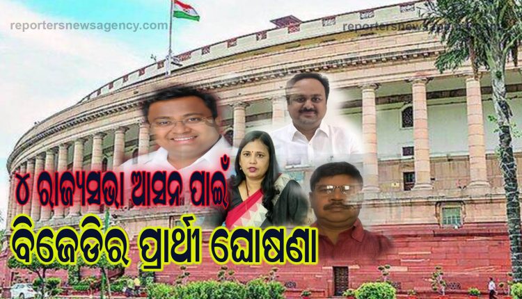 ପ୍ରକାଶ ଥାଉକି, ବର୍ତ୍ତମାନ ଓଡ଼ିଶା କୋଟାରୁ ରାଜ୍ୟସଭାରେ ୪ଟି ଆସନ ଖାଲି ରହିଛି । ପ୍ରସନ୍ନ ଆଚାର୍ଯ୍ୟ, ଦକ୍ଷିଣ ଓଡ଼ିଶାର ପ୍ରମୁଖ ଚେହେରା ଏନ୍. ଭାସ୍କର ରାଓ, ବିଜେଡି ମୁଖପାତ୍ର ସସ୍ମିତ ପାତ୍ରଙ୍କ କାର୍ଯ୍ୟକାଳ ସରିଥିବାବେଳେ କଟକ ମେୟର ଭାବେ ନିର୍ବାଚିତ ହେବା ପରେ ସୁବାସ ସିଂ ନିଜ ପଦରୁ ଇସ୍ତଫା ଦେଇଛନ୍ତି। ଏହି ୪ଟି ଆସନ ପାଇଁ ବିଜେଡି ପ୍ରାର୍ଥୀ ଘୋଷଣା କରିଛି।
