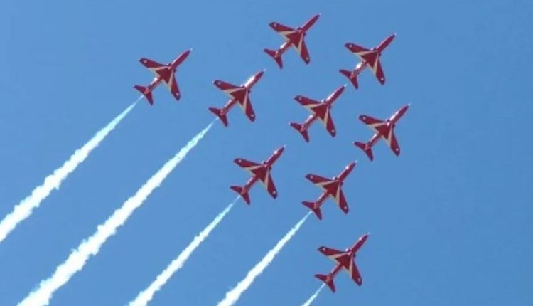 ପୂର୍ବ ନିର୍ଦ୍ଧାରିତ କାର୍ଯ୍ୟକ୍ରମ ଅନୁଯାୟୀ, ପୂର୍ବାହ୍ନ ୧୦ଟା ପରେ ରାଜଧାନୀ ଆକାଶରେ ଦେଖିବାକୁ ମିଳିଥିଲା ବାୟୁସେନାର ଚିତ୍ତାକର୍ଷକ ଶୋ’ । ୯ଟି ହକ୍ ବିମାନରେ ଭଳିକି ଭଳି ଦୁଃସାହସିକ କ୍ରୀଡ଼ା କୌଶଳ ଦେଖାଇଲେ ବାୟୁ ବୀର। ଆକାଶ ମାର୍ଗରେ ସାହସିକ ପ୍ରଦର୍ଶନ ଦେଖାଇଛି ଏରୋବେଟିକ୍ ଟିମ୍ । ଏକାସାଙ୍ଗରେ ଆକାଶରେ ଉଡ଼ିଥିଲା ୯ଟି ହକ୍ ଲଢୁଆ ବିମାନ। ରାଜଧାନୀ ଆକାଶରେ ଶୁଭୁଥିଲା ଲଢ଼ୁଆ ବିମାନର ଗର୍ଜନ।