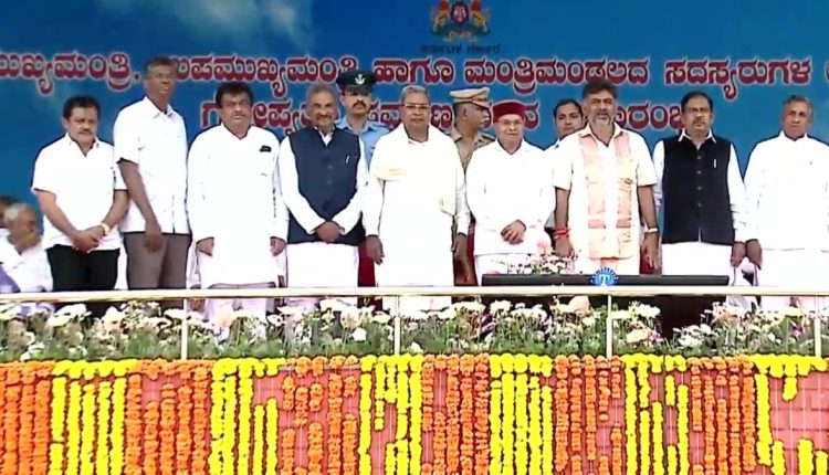 କର୍ଣ୍ଣାଟକ: ଆଜି କର୍ଣ୍ଣାଟକର ମୁଖ୍ୟମନ୍ତ୍ରୀ ଭାବେ ଶପଥ ନେଇଛନ୍ତି ବରିଷ୍ଠ କଂଗ୍ରେସ ନେତା ସିଦ୍ଧରମୈୟା । ତାଙ୍କ ସହ ଉପ ମୁଖ୍ୟମନ୍ତ୍ରୀ ଭାବେ ଡି.କେ ଶିବକୁମାର ମଧ୍ୟ ଶପଥ ନେବା ସହ ୮ ଜଣ କ୍ୟାବିନେଟ ମନ୍ତ୍ରୀ ମଧ୍ୟ ଶପଥ ନେଇଛନ୍ତି । ମନ୍ତ୍ରୀ ଭାବେ ଶପଥ ନେଇଥିବା ବିଧାୟକମାନେ ହେଲେ ଜି, ପରମେଶ୍ୱର, ଏଚ୍ ମୁନିୟପ୍ପା, କେ,ଜେ ଗର୍ଗ, ଏମ ବି ପାଟିଲ, ସତୀଶ ଜାରକିହୋଲି, ପ୍ରିୟାଙ୍କ ଖରଗେ, ରାମାଲିଙ୍ଗା ରେଡ୍ଡୀ, ବି.ଜେଡ, ଜମୀର, ଅହମ୍ମଦ ଖାନ ।