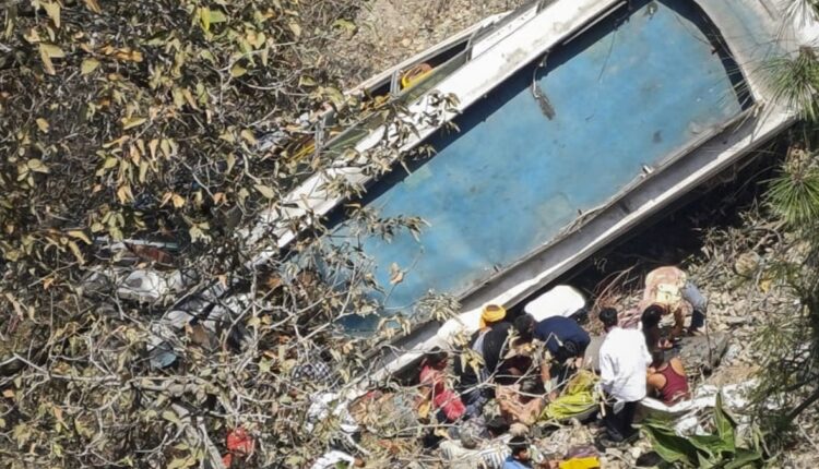 ଜମ୍ମୁ କଶ୍ମୀର: ଜମ୍ମୁ କଶ୍ମୀରରେ ୧୫୦ ଫୁଟ ତଳକୁ ଖସିପଡ଼ିଛି ତୀର୍ଥଯାତ୍ରୀ ବସ୍। ଏହି ଦୁର୍ଘଟଣାରେ ୨୧ ଜଣ ଯାତ୍ରୀଙ୍କ ମୃତ୍ୟୁ ଘଟିଥିବା ବେଳେ ୪୦ରୁ ଅଧିକ ଯାତ୍ରୀ ଆହତ ହୋଇଛନ୍ତି। ପ୍ରଶାସନ ପକ୍ଷରୁ ଉଦ୍ଧାର କାର୍ଯ୍ୟ ଜାରି ରହିଛି । ଆହତଙ୍କ ଉଦ୍ଧାର କରି ମେଡିକାଲରେ ଭର୍ତ୍ତି କରାଯାଇଛି ।