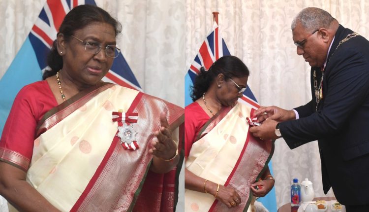 ନୂଆଦିଲ୍ଲୀ: ଫିଜିର ସର୍ବୋଚ୍ଚ ବେସାମରିକ ସମ୍ମାନରେ ସମ୍ମାନୀତ ହେଲେ ରାଷ୍ଟ୍ରପତି ଦ୍ରୌପଦୀ ମୁର୍ମୁ। ଫିଜି ଗସ୍ତ ଅବସରରେ ରାଷ୍ଟ୍ରପତି ଦ୍ରୌପଦୀ ମୁର୍ମୁଙ୍କ ପାଇଁ ଆୟୋଜିତ ପାରମ୍ପରିକ ସ୍ୱାଗତ ସମାରୋହରେ ତାଙ୍କୁ ଫିଜିର ସର୍ବୋଚ୍ଚ ବେସାମରିକ ସମ୍ମାନ – କମ୍ପାନିଅନ୍ ଅଫ୍ ଦି ଅର୍ଡର ଅଫ୍ ଫିଜି ପ୍ରଦାନ କରାଯାଇଛି। ଫିଜିର ରାଷ୍ଟ୍ରପତି ରାତୁ ୱିଲିୟମ ମିଆଭାଲିଲି କାଟୋନିଭେରେ ତାଙ୍କୁ ଏହି ସମ୍ମାନରେ ସମ୍ମାନୀତ କରିଛନ୍ତି। ପରେ ରାଷ୍ଟ୍ରପତି ଫିଜି ସଂସଦକୁ ସମ୍ବୋଧିତ କରିଥିଲେ।