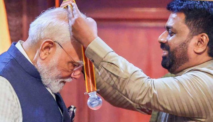 ନୂଆଦିଲ୍ଲୀ: ପ୍ରଧାନମନ୍ତ୍ରୀ ନରେନ୍ଦ୍ର ମୋଦୀ ଶ୍ରୀଲଙ୍କା ଗସ୍ତରେ ଯାଇଛନ୍ତି। ଏହି ଅବସରରେ ଶନିବାର ତାଙ୍କୁ ଶ୍ରୀଲଙ୍କା ପକ୍ଷରୁ ‘ମିତ୍ର ବିଭୂଷଣ’ ସମ୍ମାନ ପ୍ରଦାନ କରାଯାଇଛି। ଶ୍ରୀଲଙ୍କା ରାଷ୍ଟ୍ରପତି ଅନୁରା ଦିସାନାୟକେ ପ୍ରଧାନମନ୍ତ୍ରୀ ମୋଦୀଙ୍କୁ ଏହି ସମ୍ମାନରେ ସମ୍ମାନିତ କରିଛନ୍ତି।