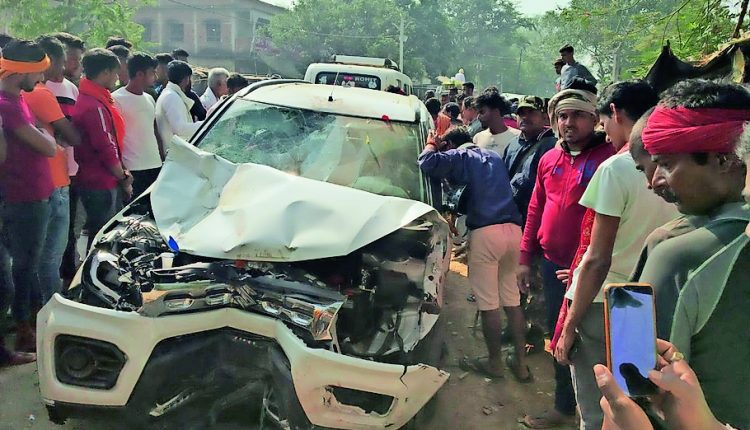 ଆଜି ସକାଳେ ୫ ଜଣ ବ୍ୟକ୍ତି କାରରେ କେଉଁଆଡେ ଯାଉଥିବାବେଳେ ଭାରସାମ୍ୟ ହରାଇ କାରଟି ଏକ ଗଛରେ ପିଟି ହୋଇଯାଇଛି। ୩ ଗୁରୁତରଙ୍କୁ ତୁରନ୍ତ ଉଦ୍ଧାର କରାଯାଇ ନିକଟସ୍ଥ ମେଡିକାଲରେ ଭର୍ତ୍ତି କରାଯାଇଛି। ସେପଟେ ଖବର ପାଇ ପୁଲିସ୍ ଘଟଣାସ୍ଥଳରେ ପହଞ୍ଚି ମୃତଦେହ ଜବତ କରି ଏକ ଦୁର୍ଘଟଣା ମାମଲା ରୁଜୁ କରି ତଦନ୍ତ ଆରମ୍ଭ କରିଛି।