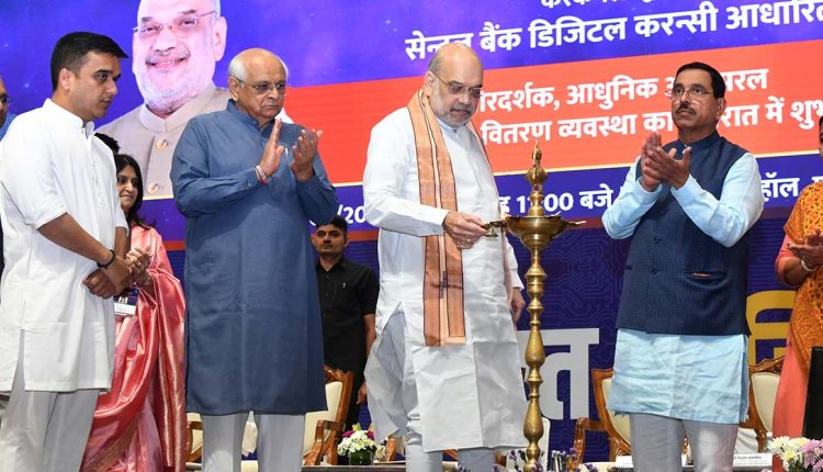 ଗୁଜରାଟ: ଭାରତର ପ୍ରଥମ କେନ୍ଦ୍ରୀୟ ବ୍ୟାଙ୍କ ଡିଜିଟାଲ୍ ମୁଦ୍ରା (CBDC) ଆଧାରିତ ସାଧାରଣ ବଣ୍ଟନ ବ୍ୟବସ୍ଥାର ଶୁଭାରମ୍ଭ ଆଜି ଗୁଜରାଟର ଗାନ୍ଧୀନଗର ସ୍ଥିତ ମହାତ୍ମା ମନ୍ଦିରରେ କରାଯାଇଛି। ଏହି ପଦକ୍ଷେପକୁ ଶୁଭାରମ୍ଭ କରିଛନ୍ତି କେନ୍ଦ୍ରୀୟ ସ୍ୱରାଷ୍ଟ୍ରମନ୍ତ୍ରୀ ଅମିତ ଶାହା।