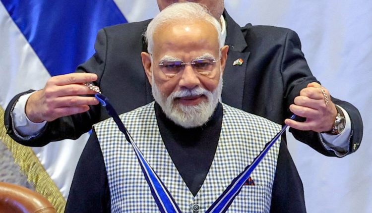 ନୂଆଦିଲ୍ଲୀ: ଇସ୍ରାଏଲର ସଂସଦ ‘ନେସେଟ୍’ ବୁଧବାର ପ୍ରଧାନମନ୍ତ୍ରୀ ନରେନ୍ଦ୍ର ମୋଦୀଙ୍କୁ ‘ସ୍ପିକର ଅଫ୍ ଦି ନେସେଟ୍ ମେଡାଲ’ରେ ସମ୍ମାନିତ କରିଛି। ଏହା ଇସ୍ରାଏଲୀ ସଂସଦର ସର୍ବୋଚ୍ଚ ସମ୍ମାନ ଏବଂ ପ୍ରଧାନମନ୍ତ୍ରୀ ମୋଦୀ ଏହି ପଦକ ପାଇବାରେ ବିଶ୍ୱର ପ୍ରଥମ ନେତା।